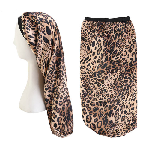 大きなサテンボンネットスリープキャップ印刷シルキーボンネットワイド弾性バンド女性用ヘアケアカーリーナチュラルロングヘアボタン付きBB