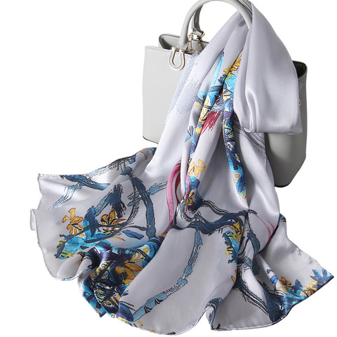 Benutzer definierter Bildschirm Digital bedruckter Seiden schal Design Übergroßer Strand brokat Langer Schal für Frauen Foulard En Soie