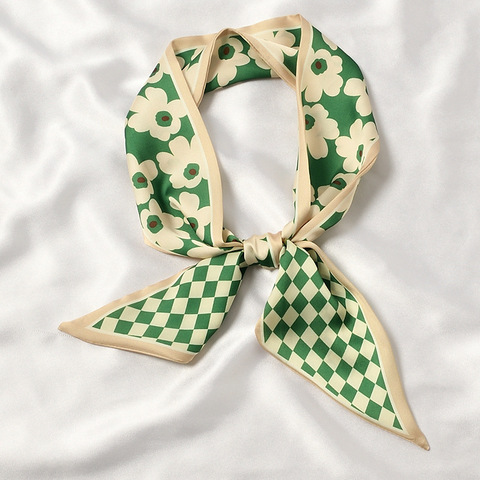 Bufanda larga estrecha de seda satinada de poliéster con diseño de primavera verde personalizada para mujer